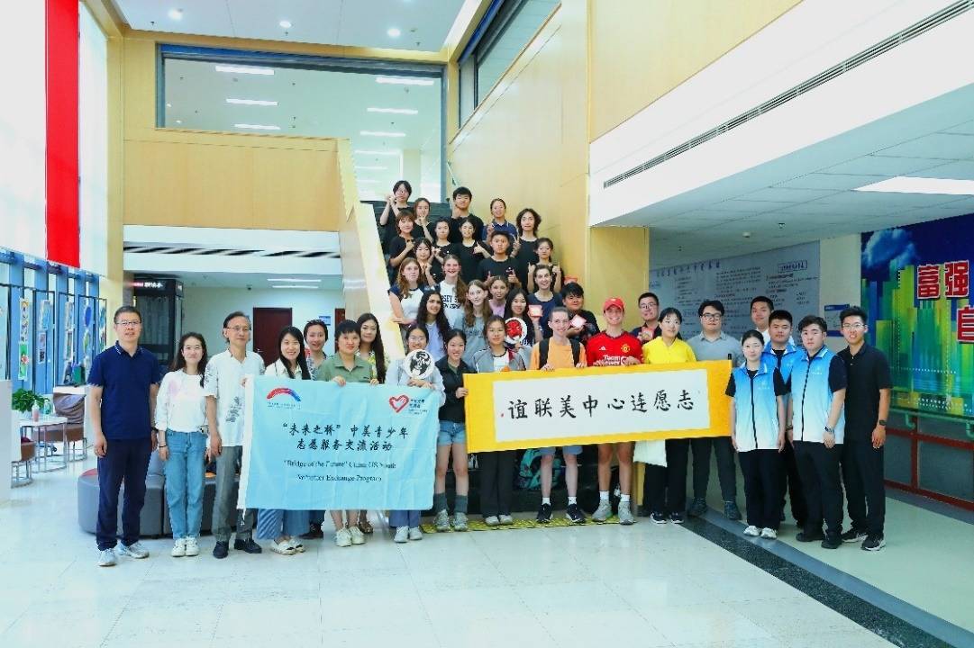 6月6日,好意思国新泽西州格伦罗克高中师生与中国粹生沿路在北京集结大学出奇栽种学院合影迷恋。(主持方供图)这次来华的好意思国粹生,许多齐是志愿劳动的积极参与者:米格尔·阿塞罗会为社区里的小一又友免费上拍浮课,教他们踢足球;玛蒂尔达·戴夫常去藏书楼和养老院作念志愿者;章日辉每周齐会在华东谈主社区协助安分开设说话课程……