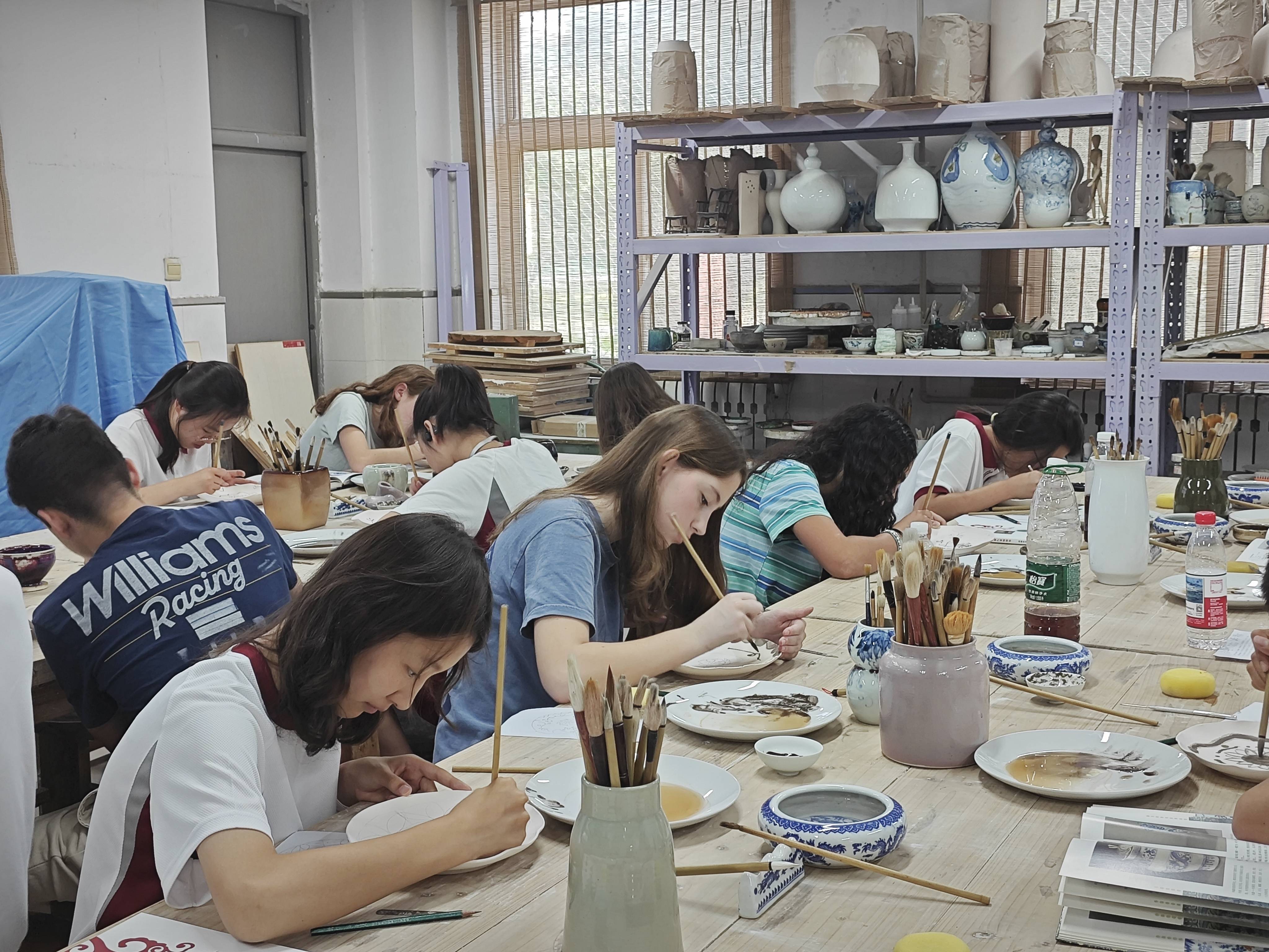 故宫之行前,好意思国师生一转在北京中学渡过了一段高亢的时光。两天时辰里,格伦罗克的学生们和北京中学的伙伴们共同体验了跳舞课、陶艺课、物理课、体育课、音乐课等多样各种的道理课程,中好意思青少年的友谊在课堂彼此配合中缓缓升温。