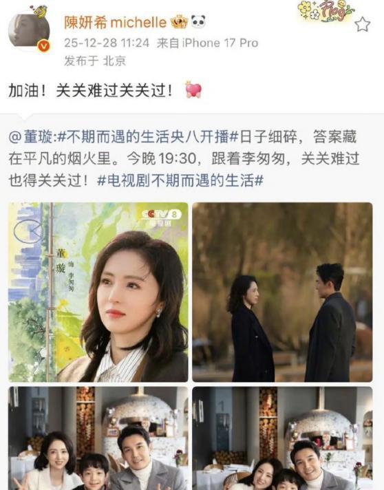之前,董璇在个东谈主帐号上为新剧发过宣传,配文是把一地鸡毛过成“繁荣昌盛的日子”。