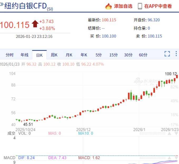 1月23日,白银价钱初度站上100好意思元大关,刷新历史记录,将年内涨幅推升至40%,同时透露远超黄金。