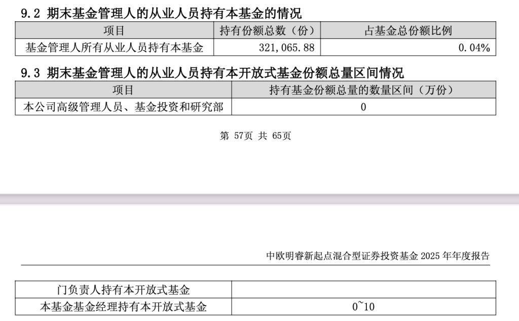 值得一提的是,在2025年下半年时期,中欧基金高等解决东谈主员、基金投资和计划部门阐扬东谈主清仓卖出了中欧明睿新最先,胁制客岁末,葛兰关于该基金的执有份额也由“10万-50万份”降至“0-10万份”,中欧基金里面从业东谈主员共计减执162.87万份。